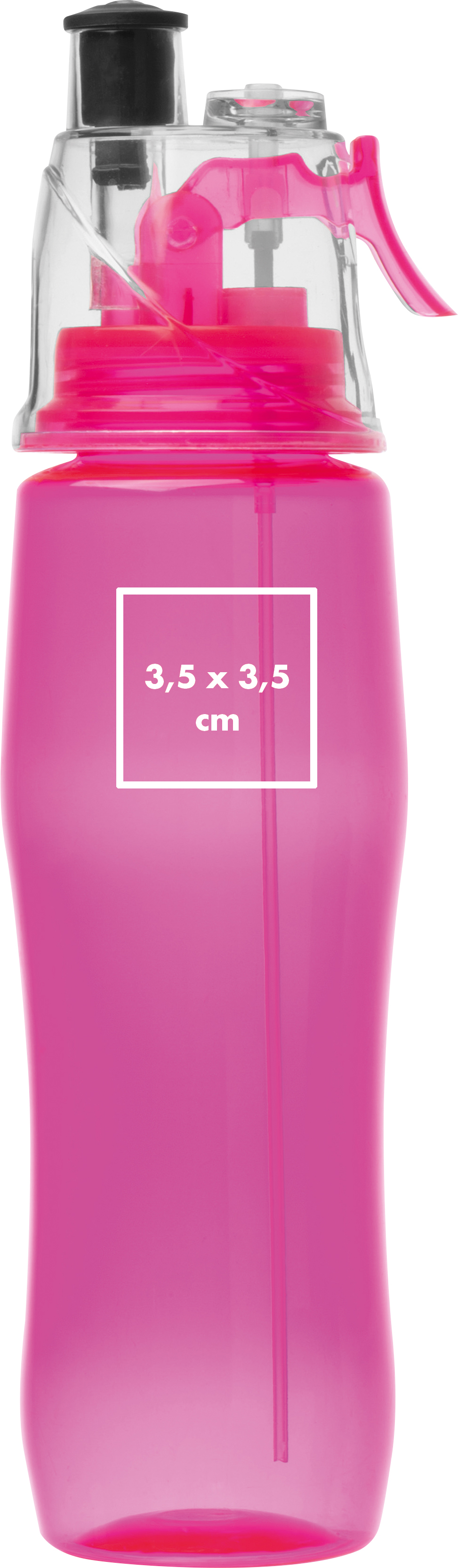 Sporttrinkflasche aus Kunststoff mit Sprayfunktion, einem verschließbarem Deckel und einem Füllvermögen von 700ml.Entdecken Sie unsere innovative Sporttrinkflasche aus hochwertigem Kunststoff, die speziell für aktive Menschen entwickelt wurde. Mit einer Füllmenge von großzügigen 700 ml und einer Vielzahl praktischer Features ist diese Trinkflasche der ideale Begleiter für Ihre sportlichen Abenteuer. Wir bieten Ihnen die Möglichkeit, Ihr individuelles Logo auf die Flasche drucken zu lassen, um Ihre Marke in Bewegung zu bringen. Produkthighlights: Sprayfunktion: Unsere Sporttrinkflasche ist mit einer Sprayfunktion ausgestattet, die für eine erfrischende Abkühlung während des Trainings sorgt. Einfach auf den Sprayknopf drücken, und Sie können sich mit einer feinen Nebelbefeuchtung erfrischen – ideal an heißen Tagen oder während anstrengender Workouts. Verschließbarer Deckel: Der praktische, verschließbare Deckel sorgt dafür, dass kein Tropfen verloren geht und Ihre Flasche immer sauber bleibt. Das macht sie auch ideal für unterwegs, ohne dass Sie sich Sorgen um ungewollte Lecks machen müssen. Großzügiges Füllvermögen: Mit einem Fassungsvermögen von 700 ml haben Sie stets ausreichend Flüssigkeit zur Hand, um Ihren Durst zu stillen und optimal hydriert zu bleiben. Damit sind Sie für lange Trainingseinheiten, Wanderungen oder Radtouren bestens gerüstet. Werbeanbringung: Wir bieten die Möglichkeit, Ihr Logo oder Ihr Design auf die Flasche zu drucken. Damit wird diese Trinkflasche nicht nur zu einem praktischen Sportaccessoire, sondern auch zu einem effektiven Werbemittel für Ihr Unternehmen oder Ihre Veranstaltung.