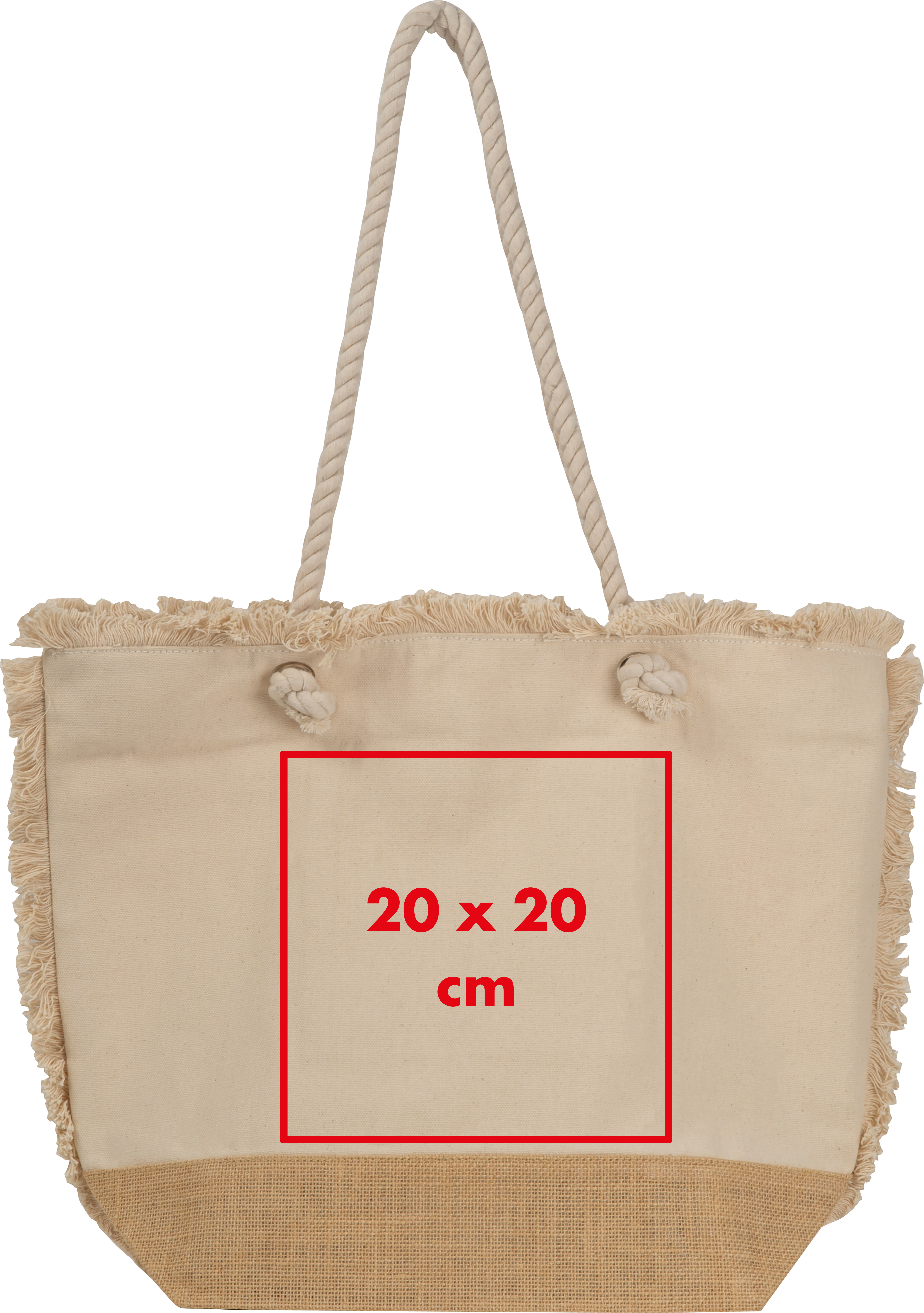 Strandtasche mit Juteboden und Fransen RICARDA als Werbeartikel oder Werbemittel