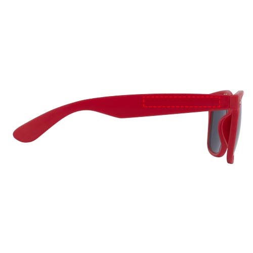 Sun Ray Sonnenbrille aus recyceltem KunststoffDiese nachhaltige Sonnenbrille im Retro-Design ist der ideale Werbeartikel für Sommerfestivals, Veranstaltungen oder andere sonnige Aktivitäten im Freien. Die Sonnenbrille ist leicht und angenehm zu tragen und aus recyceltem Kunststoff hergestellt, und somit eine nachhaltige Wahl. Sie entspricht der Norm EN ISO 12312-1 und verfügt über UV400-Gläser der Kategorie 3, wodurch sie die perfekte Wahl für den Schutz vor hellem Sonnenlicht ist.