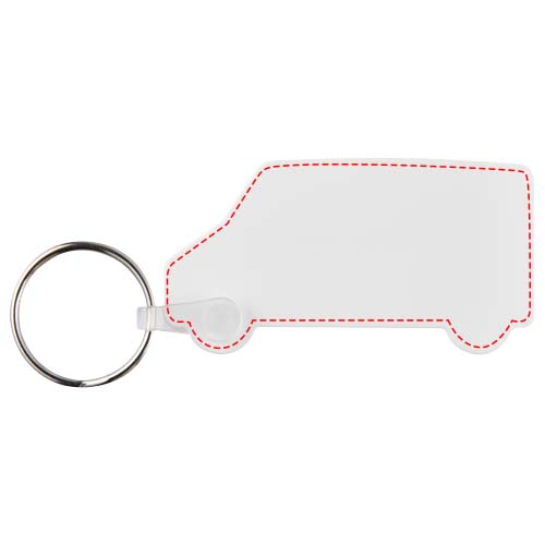 Tait Van Schlüsselanhänger aus recyceltem MaterialWeißer Schlüsselanhänger in Form eines Vans mit metallenem Schlüsselring. Der Metallring bietet ein flaches Profil, das sich ideal für Mailings eignet.