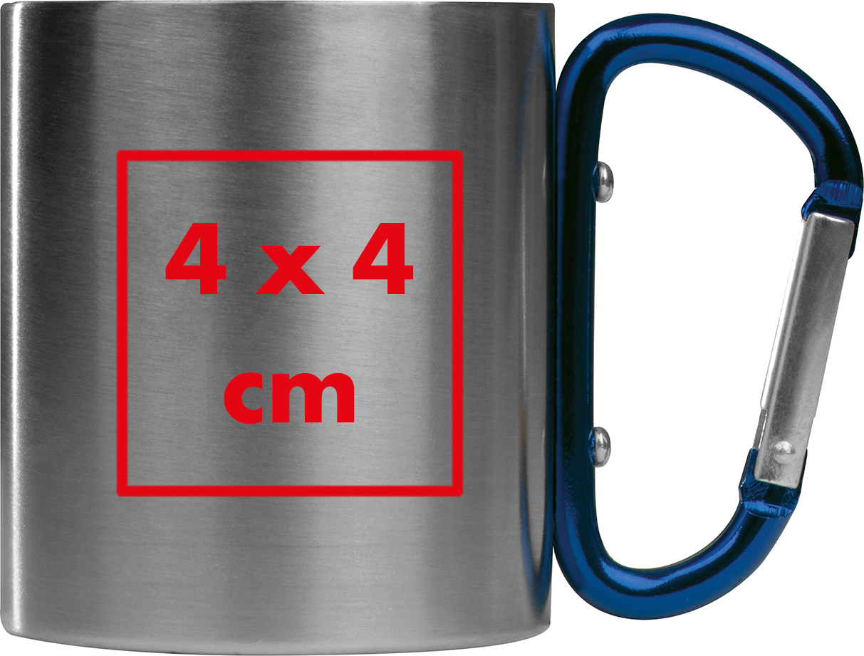 Doppelwandige Tasse aus Edelstahl mit farbigem Karabinerhaken und einem Füllvermögen von 200ml.Unsere doppelwandige Edelstahltasse mit Karabinerhaken ist nicht nur praktisch, sondern auch stilvoll und individuell gestaltbar. Sie eignet sich hervorragend als Werbegeschenk für Kunden, Mitarbeiter oder als Merchandise-Artikel für Ihr Unternehmen. Bestellen Sie noch heute und lassen Sie Ihr Logo stilvoll auf dieser Tasse verewigen. Produkthighlights: Hochwertiges Material: Die Tasse besteht aus hochwertigem Edelstahl, der langlebig und robust ist. Doppelwandiges Design: Die doppelwandige Konstruktion sorgt für eine gute Isolierung, damit Ihr Getränk länger seine Temperatur behält. Farbiger Karabinerhaken: Der farbige Karabinerhaken ermöglicht es Ihnen, die Tasse bequem an Ihrem Rucksack, Gürtel oder einer anderen Tasche zu befestigen, sodass Sie sie immer griffbereit haben. Füllvermögen: Mit einem Fassungsvermögen von 180 ml ist diese Tasse ideal für den täglichen Gebrauch und unterwegs. Vielseitig einsetzbar: Perfekt für Outdoor-Aktivitäten, Reisen, Camping, Wandern oder einfach nur für den täglichen Gebrauch im Büro oder zu Hause. Werbeanbringung: Ihr individuelles Logo wird auf die Seite der Tasse graviert, wodurch es dauerhaft und stilvoll angebracht ist.