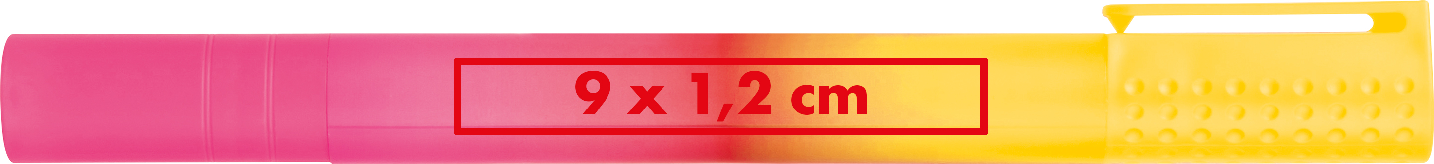 Zweifarbiger XXL Textmarker. Die Markierfarbe ist identisch zur Farbe der Kappe.