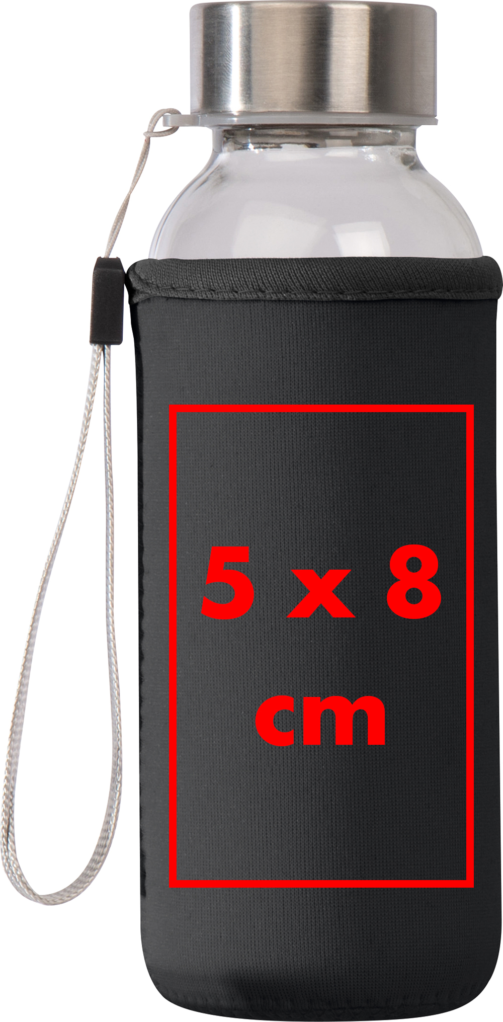 Transparente Trinkflasche aus Glas mit Edelstahldeckel, Handschlaufe, Füllvermögen von 300ml und einem Neoprenüberzug.Durch das Bedrucken des Neoprenüberzugs mit Ihrem Logo wird diese Trinkflasche nicht nur zu einem praktischen Accessoire, sondern auch zu einem effektiven Werbemittel. Bestellen Sie noch heute diese hochwertige Glas-Trinkflasche und setzen Sie auf Qualität und Funktionalität. Produkthighlights: Hochwertiges Glas: Die Flasche ist aus hochwertigem Glas gefertigt, das geschmacksneutral ist und keine schädlichen Chemikalien abgibt. Dies gewährleistet einen unverfälschten Genuss Ihrer Getränke. Edelstahldeckel: Der Edelstahldeckel sorgt für eine sichere und auslaufsichere Versiegelung Ihrer Flasche und verleiht ihr ein modernes Aussehen. Tragekomfort: Mit der integrierten Handschlaufe können Sie die Flasche bequem transportieren, egal ob beim Sport, unterwegs oder im Büro. Wiederverwendbare Alternative: Diese Glasflasche ist eine praktische Option, um herkömmliche Einweg-Plastikflaschen zu ersetzen und Abfall zu vermeiden. Werbeanbringung: Die Flasche ist mit einem Neoprenüberzug ausgestattet, der nicht nur als zusätzlicher Schutz dient, sondern auch eine perfekte Fläche für Ihr Logo bietet.