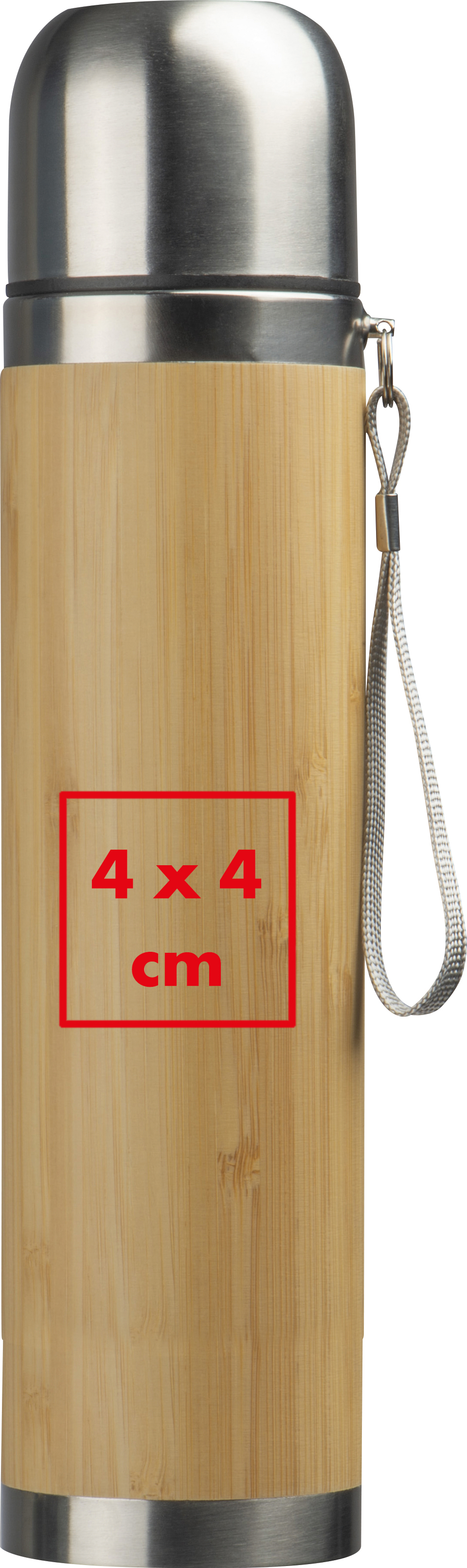 Doppelwandige Vakkum Isolierkanne aus Edelstahl mit Schnellverschluss, Trinkbecher, Handschlaufe, Bambusummantelung und einem Füllvermögen von 450 ml.Unsere doppelwandige Vakuum-Isolierkanne aus hochwertigem Edelstahl ist die perfekte Wahl, um Ihre Getränke heiß oder kalt zu halten, egal wohin Sie gehen. Mit einem Fassungsvermögen von 500 ml bietet diese Kanne genügend Platz für Ihre Lieblingsgetränke. Die Bambusummantelung verleiht der Kanne eine natürliche Note, während der Schnellverschluss und der mitgelieferte Trinkbecher die Benutzung besonders praktisch machen. Ihre Logo wird auf die Kanne graviert, um Ihre Marke zu präsentieren und das Produkt individuell zu gestalten. Produkthighlights: Doppelwandige Isolierung: Die doppelwandige Konstruktion aus Edelstahl sorgt dafür, dass Ihre Getränke lange heiß oder kalt bleiben. Schnellverschluss: Der Schnellverschluss erleichtert das Ausgießen und verhindert das Auslaufen von Flüssigkeiten. Trinkbecher: Die Kanne wird mit einem passenden Trinkbecher geliefert, der sich ideal für unterwegs eignet. Handschlaufe: Die integrierte Handschlaufe ermöglicht ein bequemes Tragen und Transportieren. Bambusummantelung: Die Bambusummantelung verleiht der Kanne ein ansprechendes, natürliches Aussehen. Füllvermögen von 500 ml: Die Kanne bietet ausreichend Platz für Ihre Getränke, sei es Kaffee, Tee, Wasser oder andere Erfrischungen. Werbeanbringung: Ihre Logo wird auf die Kanne graviert, um das Produkt individuell zu gestalten und Ihre Marke zu bewerben.