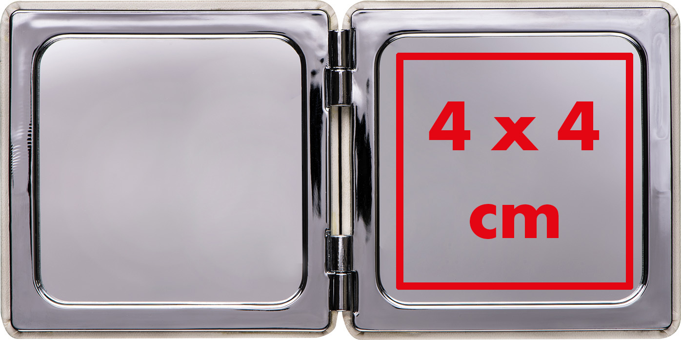 Bruchsicherer Doppelspiegel aus Metall in einem weißen Umschlag. Im Inneren befindet sich ein normaler und ein Vergrößerungsspiegel.Unser Doppelspiegel aus Metall ist nicht nur funktional, sondern auch ein stilvolles Accessoire für unterwegs. Bestellen Sie noch heute und bieten Sie Ihren Kunden eine hochwertige und personalisierte Lösung, während Sie gleichzeitig Ihre Marke in den Mittelpunkt stellen. Produkthighlights: Vielseitiger Nutzen: Dieser Doppelspiegel bietet sowohl einen normalen als auch einen Vergrößerungsspiegel für verschiedene Anwendungszwecke. Bruchsicher und langlebig: Der Spiegel ist bruchsicher und aus hochwertigem Metall gefertigt, was seine Langlebigkeit gewährleistet. Praktischer Umschlag: Der Spiegel wird in einem weißen Umschlag geliefert, der ihn schützt und leicht transportierbar macht. Werbeanbringung: Ihr Logo wird per Lasergravur auf dem Normalspiegel angebracht, um Ihre Marke stilvoll zu präsentieren.