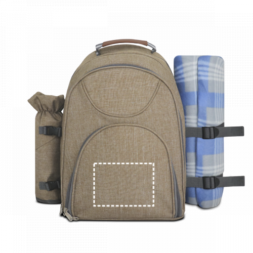 Thermischer Picknick-Rucksack aus 600D, hochdichtem, recyceltem Polyester. Der Rucksack hat eine abnehmbare Decke und eine Thermotasche für Flaschen. Das Hauptfach ist gepolstert und hat ein wärmeisolierendes Futter. Die Vordertasche ist mit 210D gefüttert und gepolstert, mit einem abnehmbaren Utensilienhalter, der 12 Besteckteile aus Edelstahl (4 Gabeln, 4 Messer und 4 Löffel), 4 Teller, 4 PS-Gläser, 4 100% Baumwollservietten, 1 Salzstreuer, 1 Pfefferstreuer, 1 PP-Schneidebrett und 1 Korkenzieher enthält. Die Flaschentasche und das Hauptfach sind vollständig gefüttert (mit PEVA) und gepolstert. Die Decke ist aus 100% rPET-Fleece, gefüttert mit PEVA (160 g/m²)Ihr Promoidee-Kundenbetreuer ist Ihnen gerne behilflich den Artikel VILLA Picknick Rucksack, durch Anbringung Ihres Firmenlogos, zu Ihrem ganz persönlichen Werbeartikel zu machen.