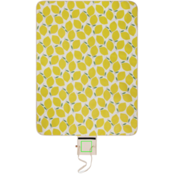 VINGA Arwe GRS Picknick-DeckeMit dieser GRS-zertifizierten Picknickdecke aus recyceltem PET können Sie Ihre Outdoor-Abenteuer noch besser gestalten. Sie hat eine weiche Fleece-Oberfläche mit einem lebendigen Zitronenmuster und eine praktische wasserabweisende PEVA-Rückseite. Dank des eleganten Designs mit einer Lasche aus Baumwollgewebe und einem langen Griff lässt sich die Decke leicht zusammenfalten und transportieren - perfekt für den Strand oder den Park. Die GRS-Zertifizierung (Global Recycled Standard) garantiert, dass die gesamte Lieferkette der recycelten Materialien zertifiziert ist. Der Gesamtanteil an recyceltem Material basiert auf dem Gesamtgewicht des Produkts. Dieses Produkt enthält 51% GRS-zertifiziert recyceltes PET.