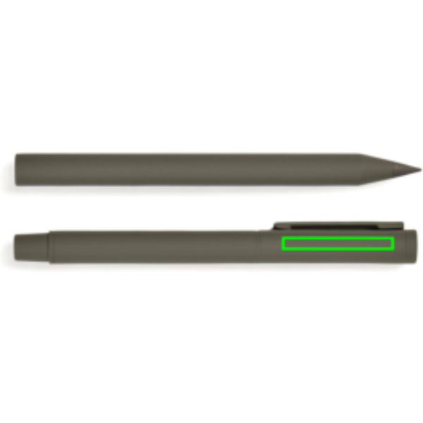 VINGA Baltimore RCS StiftesetDieses moderne und elegante Set enthält zwei Stifte: einen Infinity-Stift und einen klassischen Kugelschreiber mit Kappe und Clip. Die Stifte sind aus RCS-zertifiziert recyceltem Edelstahl gefertigt und verfügen über eine Gummibeschichtung für einen angenehmen Griff und eine matte Oberfläche, die sowohl Stil als auch Funktionalität bietet. Beide Stifte haben ein ausgewogenes Gewicht, das für Stabilität und müheloses Schreiben sorgt. Der Infinity-Stift bietet nahezu grenzenloses Schreiben. Der Kugelschreiber verfügt über eine feine 1mm-Spitze und ermöglicht ein gleichmäßiges und flüssiges Schreiben mit blauer Dokumententinte, die für bis zu 1200m. Die RCS-Zertifizierung (Recycled Claim Standard) garantiert, dass die gesamte Lieferkette der recycelten Materialien zertifiziert ist. Der Gesamtanteil an recyceltem Material basiert auf dem Gesamtgewicht des Produkts. Dieses Produkt enthält 52% RCS-zertifiziertes recyceltes Aluminium und 10% RCS-zertifizierten Edelstahl.