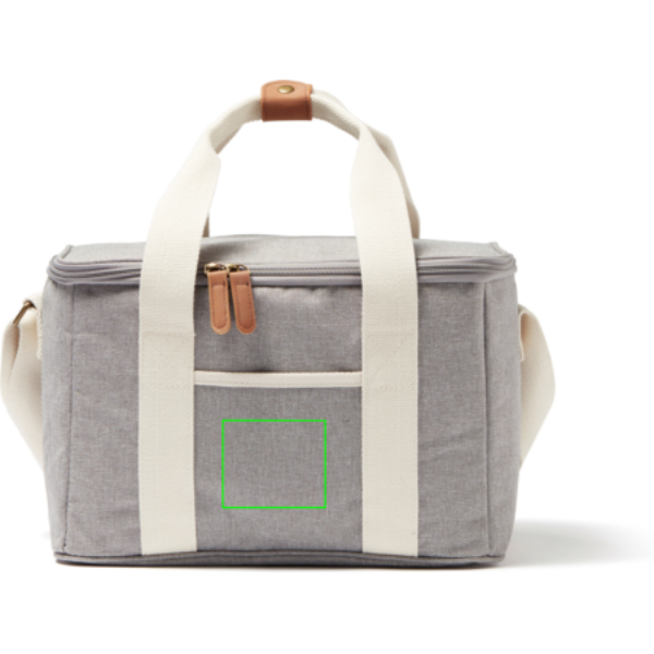 VINGA Sortino City CoolerDer ultimative Kühlkorb, Ton in Ton meliert und mit Details aus Kunstleder und Baumwolle. An der Außenseite der Kühltasche befindet sich auch ein kleines Fach, sodass Sie ebenso Platz für andere Dinge haben. Die dicke PEVA-Polsterung bewirkt, dass die Kälte lange erhalten bleibt und die Tasche nach Gebrauch außerdem leicht zu reinigen und zu trocknen ist. Dank dem verstellbaren Schultergurt und dem doppelten Handgriff, haben Sie mehrere Möglichkeiten, den Kühlkorb zu tragen.