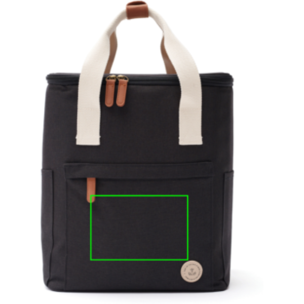 VINGA Sortino WanderkühlrucksackKühlrucksack, der sich perfekt für große und kleine Ausflüge eignet. Der Kühlrucksack hat zwei Taschen an den Seiten und eine größere Vordertasche. Mit Details aus Kunstleder und Baumwolle. Der Kühlrucksack speichert die Kälte und durch die Öffnungsklappe auf der Oberseite haben Sie einfachen Zugriff auf den Inhalt. Auf der Innenseite der Öffnungsklappe befindet sich ein Netz mit Platz für einen Kühlakku, sodass Sie im oberen Teil des Rucksacks kühlen können und sich die Kälte im ganzen Rucksack verteilt. Durch die dicke EVAC-Polsterung hält der Kühlrucksack lange kalt. Darüber hinaus ist er nach Gebrauch einfach zu trocknen.