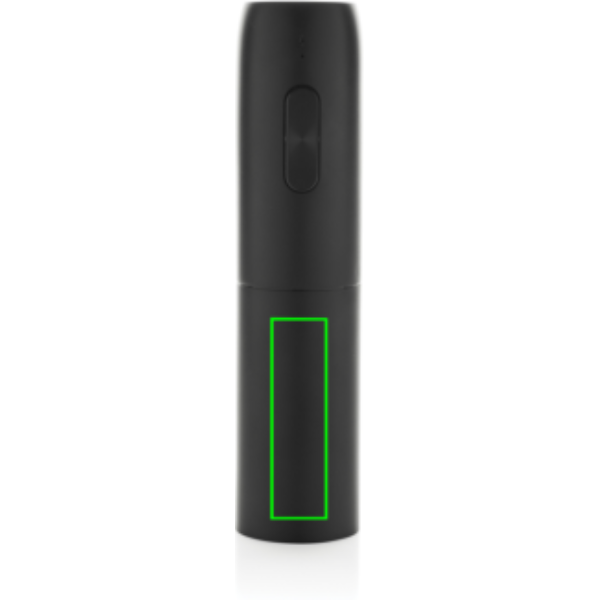 Vino wiederaufladbarer elektrischer FlaschenöffnerDer wiederaufladbare elektrische Weinöffner Vino ist eine elegante und praktische Lösung, um Flaschen zu Hause oder bei geselligen Anlässen mühelos zu öffnen. Sein mattschwarzes Design birgt einen 500mAh-Li-Ionen-Akku, der mit einer vollen Ladung 20 bis 30 Flaschen öffnen kann und über das mitgelieferte 30cm lange schwarze TPE-Kabel (USB-A auf USB-C) in 3 Stunden wieder aufgeladen werden kann. Der Öffner verfügt über eine einfache Bedienung mit Auf- und Ab-Tasten und eine Kontrollleuchte für eine einfache Handhabung. Das Etui ist PVC-frei und in einer FSC®-zertifizierten Verpackung verpackt. Inout: 5V / 1A.