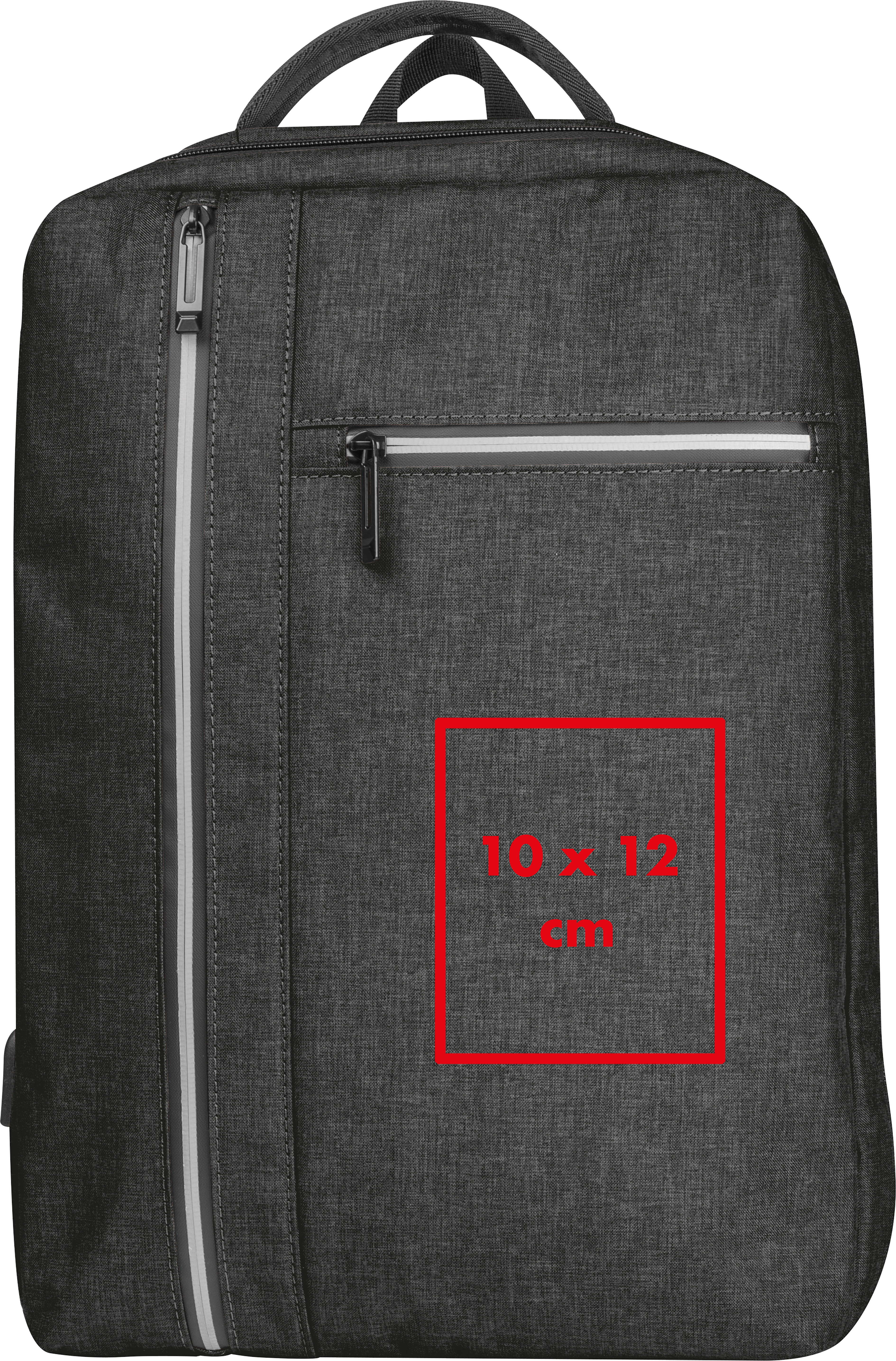 Hochwertiger, wasserabweisender Rucksack aus Nylon mit gepolsterten, atmungsaktiven Schultergurten, Tragehenkeln, USB Anschluss, zwei verschließbaren Vorfächern, einem Laptopfach für 15,6 Zoll Laptops und einem Füllvermögen von 13 Litern.Unser hochwertiger Rucksack aus strapazierfähigem Nylon ist der ideale Begleiter für den modernen Alltag. Mit zahlreichen praktischen Funktionen und einem individuellen Design, ist dieser Rucksack die perfekte Wahl für Unternehmungen, die eine zuverlässige und komfortable Tragemöglichkeit erfordern. Produkthighlights: Wasserabweisendes Nylon: Der Rucksack besteht aus wasserabweisendem Nylon, was ihn widerstandsfähig gegen leichte Regenschauer und Spritzer macht. Gepolsterte, atmungsaktive Schultergurte: Die gepolsterten Schultergurte sorgen für hohen Tragekomfort, auch bei längeren Strecken. Das atmungsaktive Material verhindert unangenehmes Schwitzen. Integrierter USB-Anschluss: Mit dem eingebauten USB-Anschluss können Sie Ihre Geräte unterwegs aufladen, indem Sie eine Powerbank in den Rucksack legen. Ideal für Geschäftsreisen und Pendler. Vielfältige Aufbewahrungsmöglichkeiten: Der Rucksack verfügt über zwei verschließbare Vorfächer für kleinere Gegenstände und ein separates Laptopfach, das Platz für Laptops mit bis zu 15,6 Zoll Bildschirmdiagonale bietet. Werbeanbringung: Wir bieten die Möglichkeit, Ihre Logo auf der Vorderseite des Rucksacks zu drucken, um Ihre Marke sichtbar zu machen und Ihre Werbebotschaft zu verbreiten.