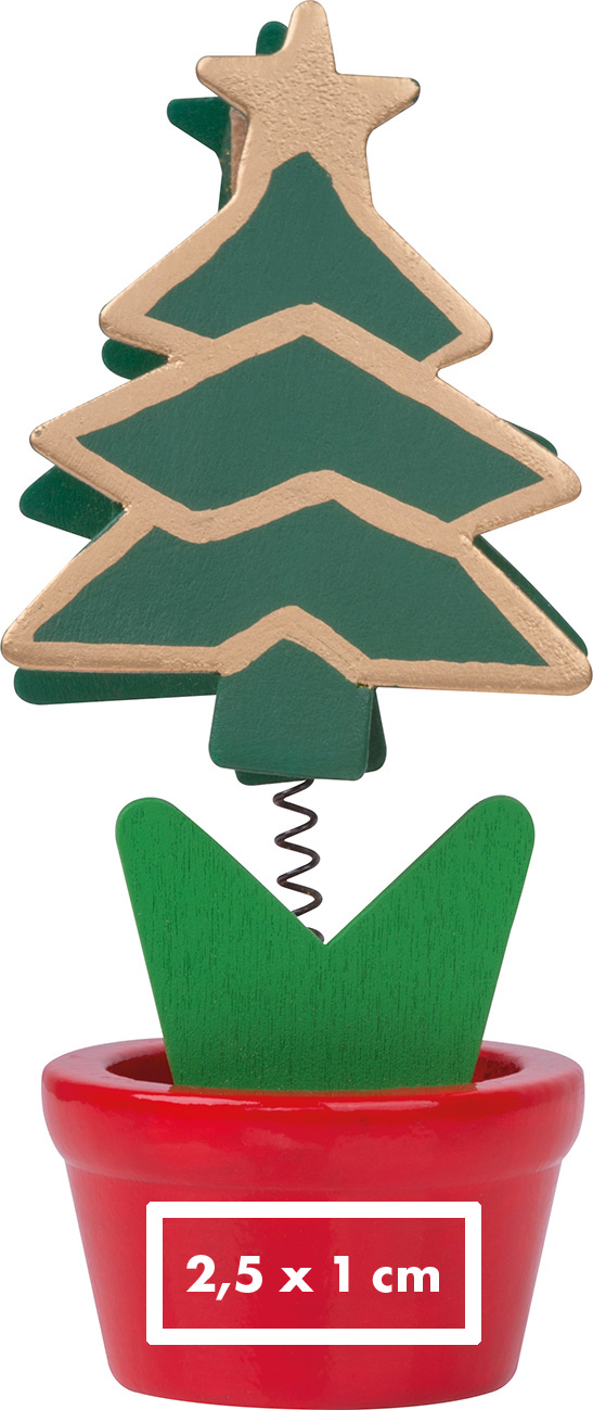 Festlich organisert. Der Notizzettelhalter mit Weihnachtsbaum-Motiv bringt Ordnung und Stimmung auf den Schreibtisch. Durch eine Metallfeder ist er ein flexibles Highlight für alle To-Do's und Notizen.