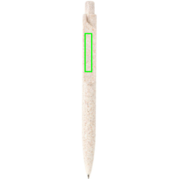 Weizenstroh StiftDieser schicke Stift besteht anteilig aus den Überbleibseln der Weizenernte, so ist er umweltfreundlich und nachhaltiger als reine Kunststoffstifte. ( 40% Weizenstroh und 60% ABS) Mit blauschreibender Dokumental-Mine für bis zu 1200m und einem TC-Ball für ein sanftes Schreibgefühl.