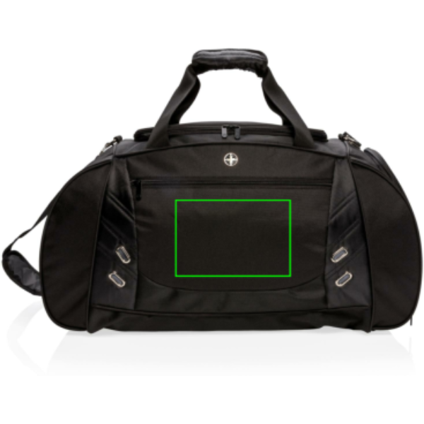 Wochenend-/SporttascheDiese 600D mit 1680D Polyester Tasche im sportlichen Design ist ideal für Ihren Besuch im Fitnessstudio oder für legeres Reisen. Inkl. geräumigem Hauptfach mit U-förmigem Reißverschluss an der Oberseite, seitlichem Schuhfach mit Belüftung und seitlichem Flaschenhalterfach. Praktisches Frontfach mit Reißverschluss für Smartphones und andere Reiseaccessoires. Verstellbarer Schulterriemen und doppelter Tragegriff an der Oberseite für besseren Tragekomfort und Trageflexibilität. PVC-frei.