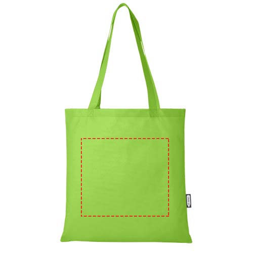 Zeus Non Woven große Tragetasche 6L aus GRS Recyclingmaterial 6 LDie Zeus GRS-recycelte große Tragetasche aus strapazierfähigem und reißfestem RPET ist eine perfekte und nachhaltigere Option für Messen oder Konferenzen. Ihr schlankes Design macht sie zu einem eleganten Modell, das sich für den Transport von leichten Gegenständen wie einem Notebook und einem Stift eignet. Die Griffe sind 29 cm lang, sodass die Tragetasche leicht über der Schulter getragen werden kann. Belastbarkeit bis zu 5 kg.