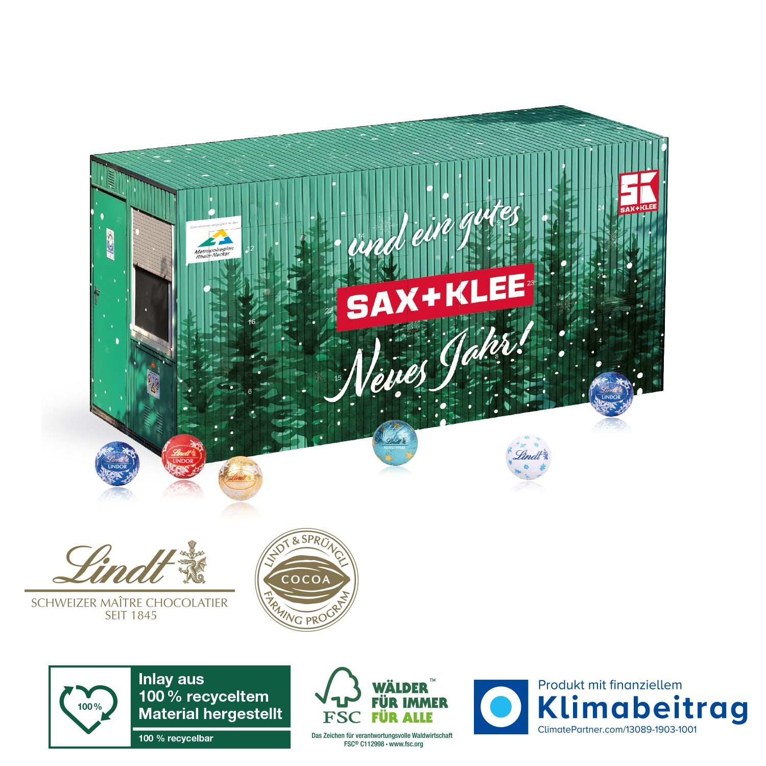 3D Adventskalender "Container" mit Lindt Schokolade als Werbeartikel oder Werbemittel