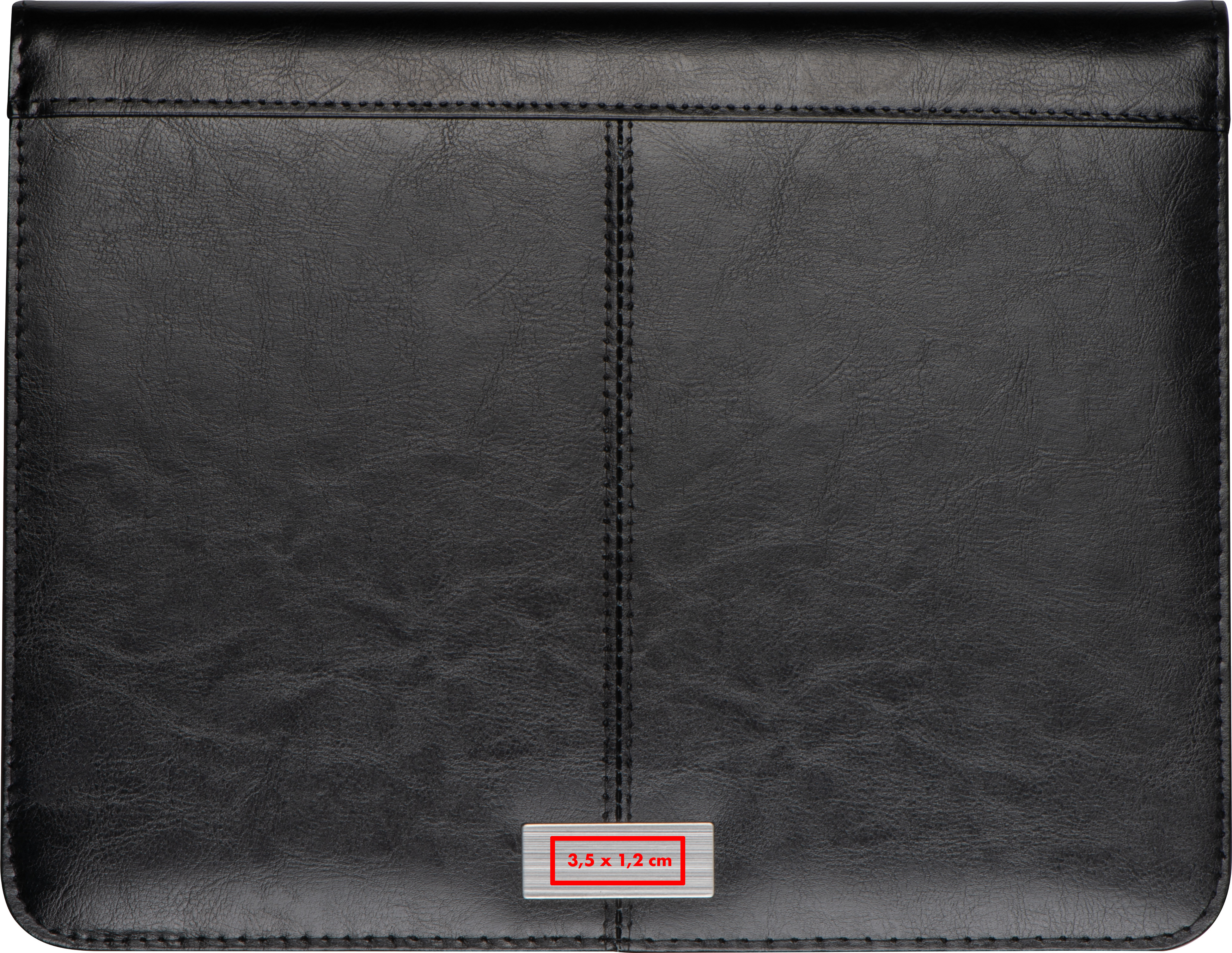 A4 Schreibmappe mit Reißverschluss aus Kunstleder mit Steckfächern, Visitenkartenfächern, Kugelschreiberschlaufe, Smartphonehalterung, Aufbewahrungsfach für Tablet oder Notebook und liniertem Block mit kleinem Kalendereindruck.Unsere A4 Schreibmappe mit Reißverschluss aus hochwertigem Lederfaserstoff ist die perfekte Wahl für anspruchsvolle Geschäftsanforderungen. Mit zahlreichen praktischen Funktionen und einem stilvollen Design sorgt diese Mappe für eine organisierte und professionelle Arbeitsumgebung. Produkthighlights: Hochwertiger Lederfaserstoff: Die Schreibmappe ist aus hochwertigem Lederfaserstoff gefertigt, was Langlebigkeit und ein elegantes Erscheinungsbild gewährleistet. Steckfächer und Visitenkartenfächer: Die Mappe bietet reichlich Platz für Dokumente, Visitenkarten und andere wichtige Unterlagen. Kugelschreiberschlaufe: Die Kugelschreiberschlaufe sorgt dafür, dass Sie stets einen Stift griffbereit haben. Smartphonehalterung: Die integrierte Smartphonehalterung ermöglicht es, Ihr Smartphone während der Arbeit oder Meetings in aufrechter Position zu platzieren. Aufbewahrungsfach für Tablet oder Notebook: Ein spezielles Fach bietet Platz für Ihr Tablet oder Notebook, um sicherzustellen, dass Sie alle erforderlichen Unterlagen griffbereit haben. Liniertes Block mit Kalendereindruck: Der linierte Block mit Kalendereindruck erleichtert die Organisation von Terminen und Notizen. Reißverschluss: Der Reißverschluss sichert den Inhalt der Mappe und schützt Ihre Unterlagen. Werbeanbringung: Ihre Werbung wird auf das Metallplättchen außen der Mappe gelasert, was einen stilvollen und dauerhaften Eindruck hinterlässt.