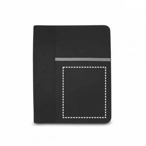 Schreibmappe A4 aus 600D mit Ringbuchablage und Reißverschluss. Diese Mappe hat eine Vordertasche und ein Dokumenten- und Kartenfach. Enthält ein Notizblock mit 40 linierten Seiten (60 g/m²). Kugelschreiber und USB-Stick nicht enthalten