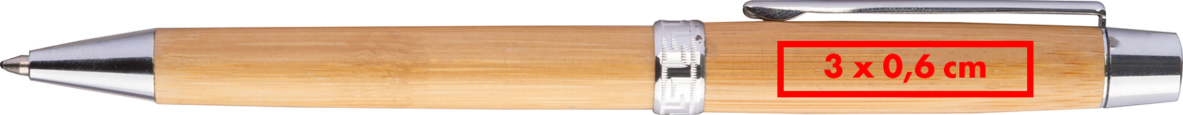 Bambuskugelschreiber mit Drehfunktion und einer blau schreibenden Mine. Geliefert im passenden Bambusetui.Unser Bambuskugelschreiber mit Drehfunktion kombiniert natürliche Materialien und modernes Design. Ausgestattet mit einer blauschreibenden Crosssystem-Mine bietet er ein angenehm leichtes Schreibgefühl und präzise Ergebnisse. Der Kugelschreiber wird in einem passenden Bambusetui geliefert, das seine Eleganz und Wertigkeit unterstreicht. Ihre Werbung wird präzise auf den Kugelschreiber graviert und sorgt für eine stilvolle und langlebige Markenpräsentation. Produkthighlights: Bambuskugelschreiber mit Drehmechanismus: Praktisch und komfortabel in der Handhabung. Blauschreibende Crosssystem-Mine: Für ein sauberes und leichtes Schreibgefühl. Passendes Bambusetui: Schützt und ergänzt den Kugelschreiber ideal. Elegantes Design: Eine ansprechende Kombination aus Funktionalität und Stil. Werbeanbringung: Ihre Werbung wird präzise auf den Kugelschreiber graviert, für eine hochwertige Präsentation Ihrer Marke.
