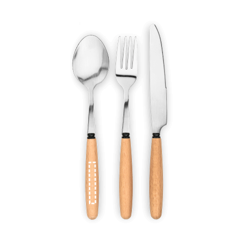 Besteckset bestehend aus 3 Teilen: 1 Löffel, 1 Gabel und 1 Messer aus rostfreiem Stahl mit Holzgriffen. Wird in einer Baumwolltasche geliefert. Da das Produkt aus natürlichen Materialien hergestellt wird, können Farbe des Produkts sowie das Druckergebnis von Produkt zu Produkt unterschiedlich seinIhr Promoidee-Kundenbetreuer ist Ihnen gerne behilflich den Artikel BOULUD Besteckset, durch Anbringung Ihres Firmenlogos, zu Ihrem ganz persönlichen Werbeartikel zu machen.