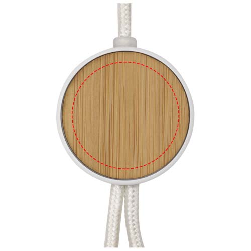 Chechia 150 cm 5-in-1 Kabel aus recyceltem Kunststoff für Datenübertragung und 27W Schnellladung mit Bambusdetails als Werbeartikel oder Werbemittel