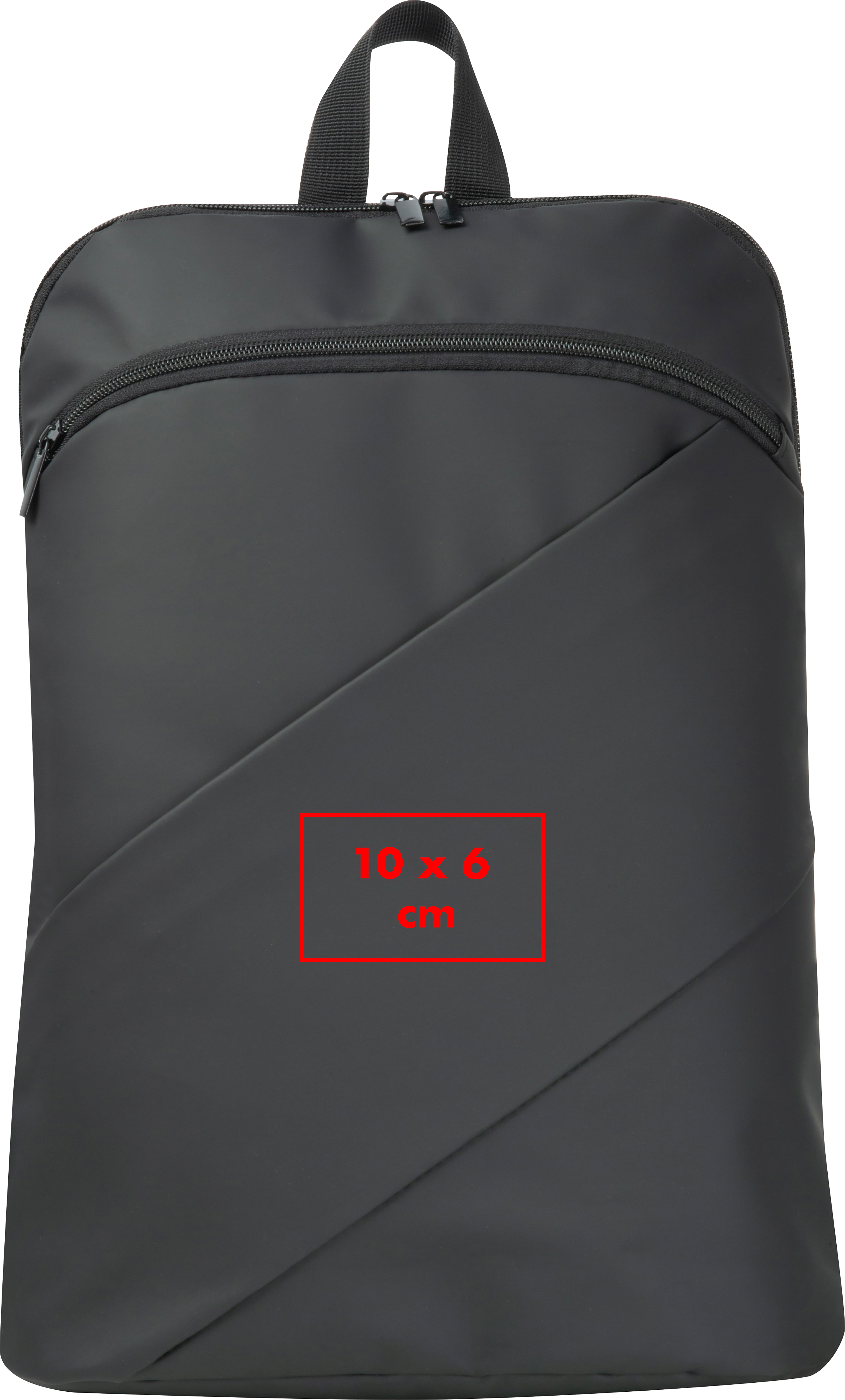 Rucksack aus PU mit zwei schrägen, schwarzglänzenden Reißverschlüssen an der Vorderseite, Trageschlaufe, zwei bequemen Schultergurten und einem Anti-Diebstahl-Fach.Unser Rucksack aus Kunstleder kombiniert modernes Design mit praktischen Funktionen. Das elegante Kunstleder wird durch zwei schräg verlaufende, schwarzglänzende Reißverschlüsse an der Vorderseite ergänzt, die dem Rucksack einen stilvollen Look verleihen. Mit einer Trageschlaufe, zwei bequemen Schultergurten und einem integrierten Anti-Diebstahl-Fach bietet er vielseitige Einsatzmöglichkeiten und Sicherheit für Ihre persönlichen Gegenstände. Ihre Werbung wird gut sichtbar auf die Vorderseite gedruckt und macht den Rucksack zu einem effektiven Werbeträger. Produkthighlights: Hochwertiges Kunstleder: Elegantes Material mit strapazierfähiger und moderner Optik. Zwei schräg verlaufende Reißverschlüsse: Schwarzglänzend, für ein einzigartiges Design und zusätzliche Funktionalität. Anti-Diebstahl-Fach: Bietet zusätzlichen Schutz für Ihre Wertgegenstände. Bequeme Schultergurte: Komfortabel und individuell anpassbar. Vielseitig einsetzbar: Perfekt für Arbeit, Freizeit oder Reisen. Werbeanbringung: Ihre Werbung wird professionell auf die Vorderseite gedruckt, für eine auffällige und stilvolle Präsentation Ihrer Marke.