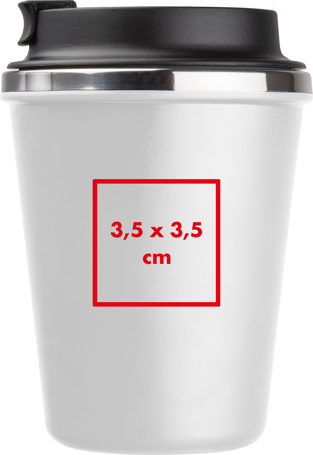 Doppelwandige Trinkbecher mit Edelstahl im Inneren und einer Außenseite aus recyceltem Kunststoff. Füllvermögen von 350ml und einem auslaufsicherem Drehverschluss mit verschließbarer Trinköffnung.Unser doppelwandiger Trinkbecher mit Edelstahl-Innenseite und recyceltem Kunststoff außen kombiniert langlebige Materialien mit modernem Design. Mit einem Fassungsvermögen von 350 ml und einer doppelwandigen Konstruktion hält er Getränke zuverlässig warm oder kalt, während die Außenseite angenehm in der Hand liegt. Der auslaufsichere Drehverschluss mit verschließbarer Trinköffnung sorgt für eine einfache und sichere Nutzung. Ihre Werbung wird präzise auf den Becher graviert, um Ihre Marke stilvoll und dauerhaft zu präsentieren. Produkthighlights: Doppelwandige Konstruktion: Hält Getränke länger auf Temperatur und schützt vor Kondensation. Edelstahl-Innenseite: Geschmacksneutral, robust und leicht zu reinigen. Außenseite aus recyceltem Kunststoff: Angenehme Haptik und modern verarbeitet. 350 ml Fassungsvermögen: Ideal für Kaffee, Tee oder andere Getränke unterwegs. Auslaufsicherer Drehverschluss: Mit verschließbarer Trinköffnung für einen sicheren Transport. Werbeanbringung: Ihre Werbung wird hochwertig auf den Becher graviert und sorgt für eine dezente und professionelle Markenpräsentation.