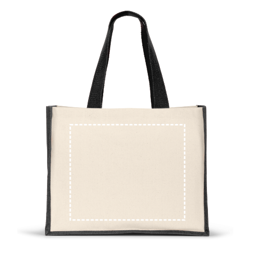 Tasche aus Canvas (320 g/m²), mit Boden und Seiten aus farbig laminierter Jute (350 g/m²)