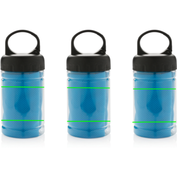 KühlhandtuchMikrofaser Kühlhandtuch ( ca. 77x30cm) mit 98% Sun-Blocker-Funktion bis zu UV50+. Einfach etwas kühles Wasser zum Handtuch in die Dose geben und fertig ist die Erfrischung. Die Dose aus PP, der Deckel aus ABS und das ganze mit einem Karabiner, um sie bei allen Outdoor-Aktivitäten immer dabei zu haben.