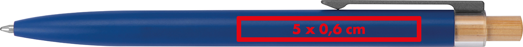 Kugelschreiber aus recyceltem Aluminium mit blauschreibender Mine und Bambusdrücker.Herzlich willkommen zu unserem stilvollen Kugelschreiber aus recyceltem Aluminium mit einem Metallclip, einer blau schreibenden Mine und einem Bambusdrücker – eine durchdachte und moderne Schreiblösung! Produkthighlights: Recyceltes Aluminium: Der Kugelschreiber besteht aus recyceltem Aluminium, das Ressourcen schont und eine bewusste Materialwahl darstellt. Metallclip: Der Metallclip verleiht dem Kugelschreiber eine moderne Optik und sorgt für einen sicheren Halt am Hemd oder in der Tasche. Blau schreibende Mine: Die blau schreibende Mine ermöglicht ein angenehmes und präzises Schreiberlebnis. Bambusdrücker: Der Drücker aus Bambus verleiht dem Schreiber eine natürliche und warme Note. Werbeanbringung: Ihr Logo wird rechts vom Clip auf dem Kugelschreiber graviert, um eine auffällige und personalisierte Präsentation zu gewährleisten.