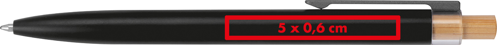 Kugelschreiber aus recyceltem Aluminium mit blauschreibender Mine und Bambusdrücker.Herzlich willkommen zu unserem stilvollen Kugelschreiber aus recyceltem Aluminium mit einem Metallclip, einer blau schreibenden Mine und einem Bambusdrücker – eine durchdachte und moderne Schreiblösung! Produkthighlights: Recyceltes Aluminium: Der Kugelschreiber besteht aus recyceltem Aluminium, das Ressourcen schont und eine bewusste Materialwahl darstellt. Metallclip: Der Metallclip verleiht dem Kugelschreiber eine moderne Optik und sorgt für einen sicheren Halt am Hemd oder in der Tasche. Blau schreibende Mine: Die blau schreibende Mine ermöglicht ein angenehmes und präzises Schreiberlebnis. Bambusdrücker: Der Drücker aus Bambus verleiht dem Schreiber eine natürliche und warme Note. Werbeanbringung: Ihr Logo wird rechts vom Clip auf dem Kugelschreiber graviert, um eine auffällige und personalisierte Präsentation zu gewährleisten.