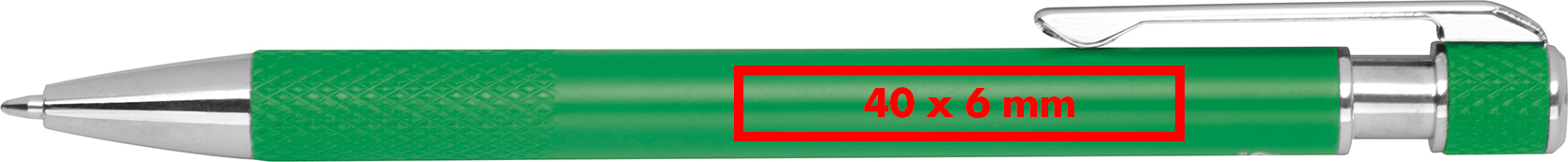 Kugelschreiber aus recyceltem Aluminium mit gemusterter Griffzone, Druckmechanik und blau schreibender Mine.Unser Kugelschreiber aus recyceltem Aluminium verbindet nachhaltige Materialien mit modernem Design und angenehmer Schreibqualität. Die gemusterte Griffzone sorgt für sicheren Halt, während die zuverlässige Druckmechanik ein komfortables Handling ermöglicht. Ausgestattet mit einer blau schreibenden Mine ist dieser Kugelschreiber der ideale Begleiter für Büro, Schule oder den täglichen Einsatz. Produkthighlights: Recyceltes Aluminium: Umweltfreundlich, robust und langlebig. Gemusterte Griffzone: Sorgt für eine angenehme Haptik und sicheren Halt beim Schreiben. Praktische Druckmechanik: Einfaches Ein- und Ausfahren der Mine auf Knopfdruck. Blaue Mine: Für ein sauberes und gleichmäßiges Schriftbild. Werbeanbringung: Ihr Logo gravieren wir hochwertig neben den Clip – perfekt als nachhaltiges Werbegeschenk oder individuelles Giveaway.