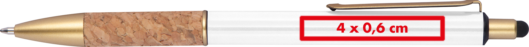 Kugelschreiber aus Metall mit goldenen Applikationen, blau schreibender Mine und Griffzone aus Kork.Unser Kugelschreiber aus Metall verbindet stilvolle Eleganz mit einem besonderen Schreibkomfort und einem ansprechenden Design. Produkthighlights: Hochwertiges Metall: Das Metallgehäuse sorgt für eine edle Optik und hohe Langlebigkeit. Blau schreibende Mine: Die Mine bietet ein präzises, flüssiges Schreibgefühl, ideal für den täglichen Gebrauch. Griffzone aus Kork: Die Korkgriffzone liegt angenehm in der Hand und verleiht dem Kugelschreiber eine besondere Haptik. Goldene Applikationen: Luxuriöse Akzente, die den Kugelschreiber zu einem echten Blickfang machen. Werbeanbringung: Ihr Logo wird rechts vom Clip präzise graviert, um dem Kugelschreiber eine individuelle Note zu verleihen und Ihre Marke stilvoll hervorzuheben.