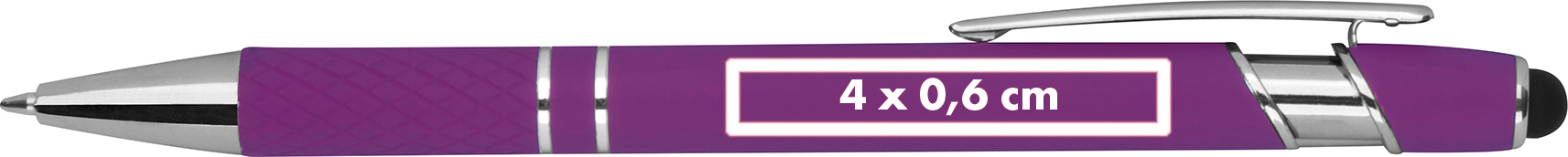 Kugelschreiber aus Aluminium mit silbernen Applikationen, blau schreibender Großraummine, Touchfunktion und gemusterter Griffzone.Unser Aluminium-Kugelschreiber ist ein exklusives Schreibgerät, das nicht nur hervorragende Schreibergebnisse liefert, sondern auch stilvoll und funktional ist. Produkthighlights: Hochwertiges Aluminium: Dieser Kugelschreiber ist aus hochwertigem Aluminium gefertigt, was ihm ein elegantes und modernes Erscheinungsbild verleiht. Blau schreibende Mine: Die blau schreibende Mine sorgt für ein reibungsloses und präzises Schreibgefühl, das in Meetings, im Büro oder unterwegs ideal ist. Touchfunktion: Die integrierte Touchfunktion ermöglicht die bequeme Bedienung von Touchscreens auf Smartphones und Tablets. Gemusterte Griffzone: Die gemusterte Griffzone sorgt für einen rutschfesten Halt und ein angenehmes Schreibgefühl. Silberne Applikationen: Silberne Applikationen verleihen dem Kugelschreiber eine stilvolle Note. Werbeanbringung: Ihr Logo wird rechts neben dem Clip auf den Kugelschreiber graviert, was ihm eine persönliche Note verleiht und ihn zu einem einzigartigen Werbemittel oder Geschenk macht.