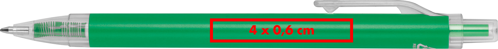 Kugelschreiber aus recyceltem Aluminium und recyceltem Kunststoff (RPET), mit transparentem Clip und blau schreibender Großraummine.Unser Kugelschreiber aus recyceltem Aluminium und recyceltem Kunststoff (RPET) kombiniert nachhaltige Materialien mit einem modernen, leichten Design. Der transparente Clip setzt einen optischen Akzent, während die blau schreibende Großraummine für ein gleichmäßiges Schriftbild und eine lange Schreibleistung sorgt. Ideal für Büro, Schule oder den täglichen Gebrauch. Produkthighlights: Nachhaltige Materialkombination: Gefertigt aus recyceltem Aluminium und recyceltem Kunststoff (RPET). Transparenter Clip: Modernes Design mit praktischer Befestigungsmöglichkeit. Großraummine in Blau: Langlebig und zuverlässig für ausgedehntes Schreiben. Angenehme Handhabung: Leichtes Gewicht für komfortables Schreiben. Werbeanbringung: Ihr Logo gravieren wir hochwertig neben den Clip – ideal als nachhaltiges Werbegeschenk oder individuelles Giveaway.