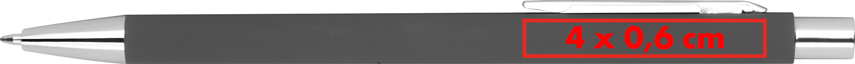 Schlanker Druckkugelschreiber aus Metall mit silbernen Applikationen und blau schreibender Mine.Unser schlanker Druckkugelschreiber aus Metall kombiniert modernes Design mit hochwertiger Verarbeitung und bietet ein angenehmes Schreiberlebnis. Mit seiner eleganten Form und den silbernen Applikationen ist er ein stilvoller Begleiter für den Alltag. Die robuste Konstruktion aus Metall sorgt für Langlebigkeit, während Ihre Werbung durch eine Gravur rechts vom Clip dezent und professionell in Szene gesetzt wird. Produkthighlights: Elegantes Design: Schlanke Form und silberne Applikationen für eine zeitlose, moderne Optik. Blau schreibende Mine: Garantiert flüssiges und präzises Schreiben, ideal für längere Notizen und Aufgaben. Robuste Metallkonstruktion: Langlebig und angenehm in der Hand für den täglichen Gebrauch. Vielseitiger Einsatz: Perfekt für das Büro, die Schule oder als hochwertiger Werbeartikel. Werbeanbringung: Ihr Logo wird rechts vom Clip graviert, um eine dezente und elegante Präsentation Ihrer Marke zu gewährleisten.