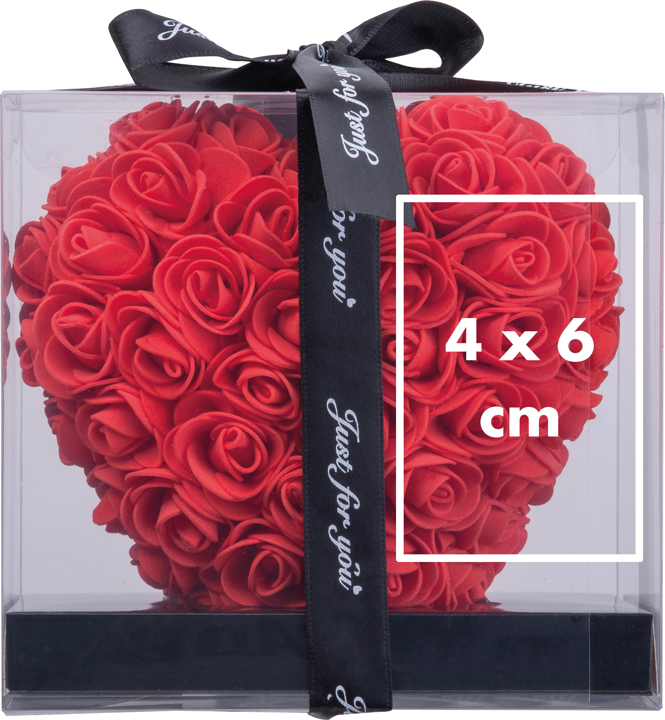 Herz aus detailgetreu gearbeiteten, künstlichen Rosenköpfen. Präsentiert in einer transparenten, hochwertigen Geschenkverpackung mit eleganter Schleife – ideal als dekoratives Präsent oder liebevolle Aufmerksamkeit.Unser Herz aus detailgetreu gearbeiteten, künstlichen Rosenköpfen ist ein stilvolles und langlebiges Symbol für Wertschätzung und Zuneigung. Die kunstvoll arrangierten Rosen verleihen dem Herz eine edle Optik und machen es zu einem besonderen dekorativen Highlight. Präsentiert in einer transparenten, hochwertigen Geschenkverpackung mit eleganter Schleife eignet es sich ideal als liebevolle Aufmerksamkeit oder dekoratives Präsent zu besonderen Anlässen. Produkthighlights: Detailgetreue Rosenköpfe: Hochwertige, künstliche Rosen mit natürlicher Optik. Herzförmiges Design: Symbolisch, dekorativ und zeitlos schön. Edle Geschenkverpackung: Transparente Verpackung mit eleganter Schleife für eine hochwertige Präsentation. Langlebig & pflegeleicht: Kein Verwelken – dauerhaft dekorativ. Vielseitig einsetzbar: Ideal als Geschenk, Dekoration oder liebevolle Aufmerksamkeit. Werbeanbringung: Ihre Werbung bringen wir mittels Etikett auf der Verpackung an – perfekt als emotionales Werbegeschenk oder hochwertiges Präsent.