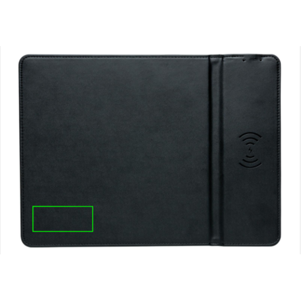 PU Mousepad mit integrierter Wireless-Charging Funktion für QI-fähige Smartphones und mit Handyhalter. 40cm Micro-USB Kabel inklusive, um das Mousepad mit dem USB Port Ihres Computers zu verbinden. Input: 1A. Output: 5V/1A. Wireless Output: 5W.