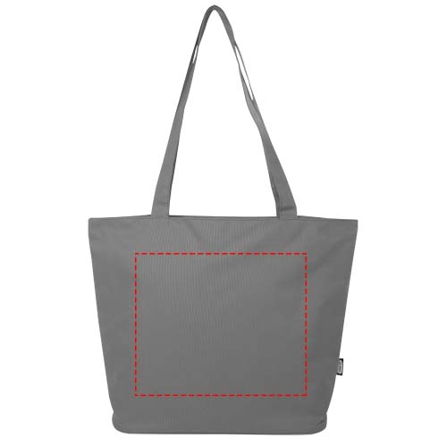 Panama Tragetasche aus GRS Recyclingmaterial 20 LDie Panama GRS-recycelte Tragetasche mit Reißverschluss aus wasserabweisendem 600D RPET ist eine perfekte Mehrzwecktasche für den Besuch einer Veranstaltung, für den Strand oder für den Lebensmitteleinkauf. Sie verfügt über ein Hauptfach mit Reißverschluss und eine Innentasche mit Reißverschluss, die groß genug ist, um Ihr Telefon und andere wertvolle Gegenstände zu verstauen. Die Griffe sind 34 cm lang, sodass die Tasche leicht über der Schulter getragen werden kann. Belastbarkeit bis zu 10 kg. PVC frei.