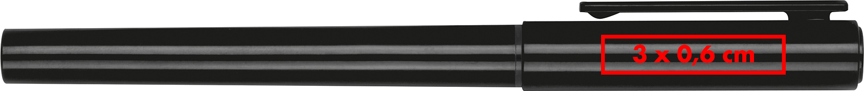 Rollerball aus Kunststoff mit verschließbarer Kappe, Clip und großer blauer Tintenpatrone.Herzlich willkommen zu unserem praktischen Rollerball aus Kunststoff – ein zuverlässiges Schreibinstrument mit verschließbarer Kappe, Kunststoffclip und großer blauer Tintenpatrone! Produkthighlights: Kunststoffrollerball: Der Rollerball besteht aus hochwertigem Kunststoff, was Langlebigkeit und Komfort gewährleistet. Verschließbare Kappe: Die verschließbare Kappe schützt die Rollerballspitze und verhindert das Austrocknen der Tinte. Kunststoffclip: Der Kunststoffclip ermöglicht eine bequeme Befestigung am Notizbuch, Hemd oder an der Tasche. Große blaue Tintenpatrone: Die große blaue Tintenpatrone sorgt für langanhaltendes Schreibvergnügen. Werbeanbringung: Ihr Logo wird rechts vom Clip auf dem Rollerball gedruckt, um eine auffällige und personalisierte Präsentation zu gewährleisten.