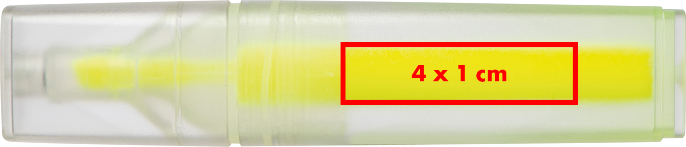 Textmarker aus recyceltem Kunststoff mit gelber Markierfarbe in transparentem Gehäuse.Herzlich willkommen zu unserem praktischen Textmarker aus recyceltem Kunststoff – eine durchdachte Wahl mit gelber Markierfarbe und einem transparenten Gehäuse! Produkthighlights: Recycelter Kunststoff: Der Textmarker besteht aus recyceltem Kunststoff, der Ressourcen spart und eine bewusste Alternative darstellt. Gelbe Markierfarbe: Die gelbe Markierfarbe sorgt für klare und gut sichtbare Markierungen für effektives Arbeiten. Transparentes Gehäuse: Das transparente Gehäuse ermöglicht eine einfache Kontrolle des Farbverbrauchs und verleiht dem Textmarker eine moderne Optik. Werbeanbringung: Ihr Logo wird auf das Gehäuse des Textmarkers gedruckt, um eine auffällige und personalisierte Präsentation zu gewährleisten.