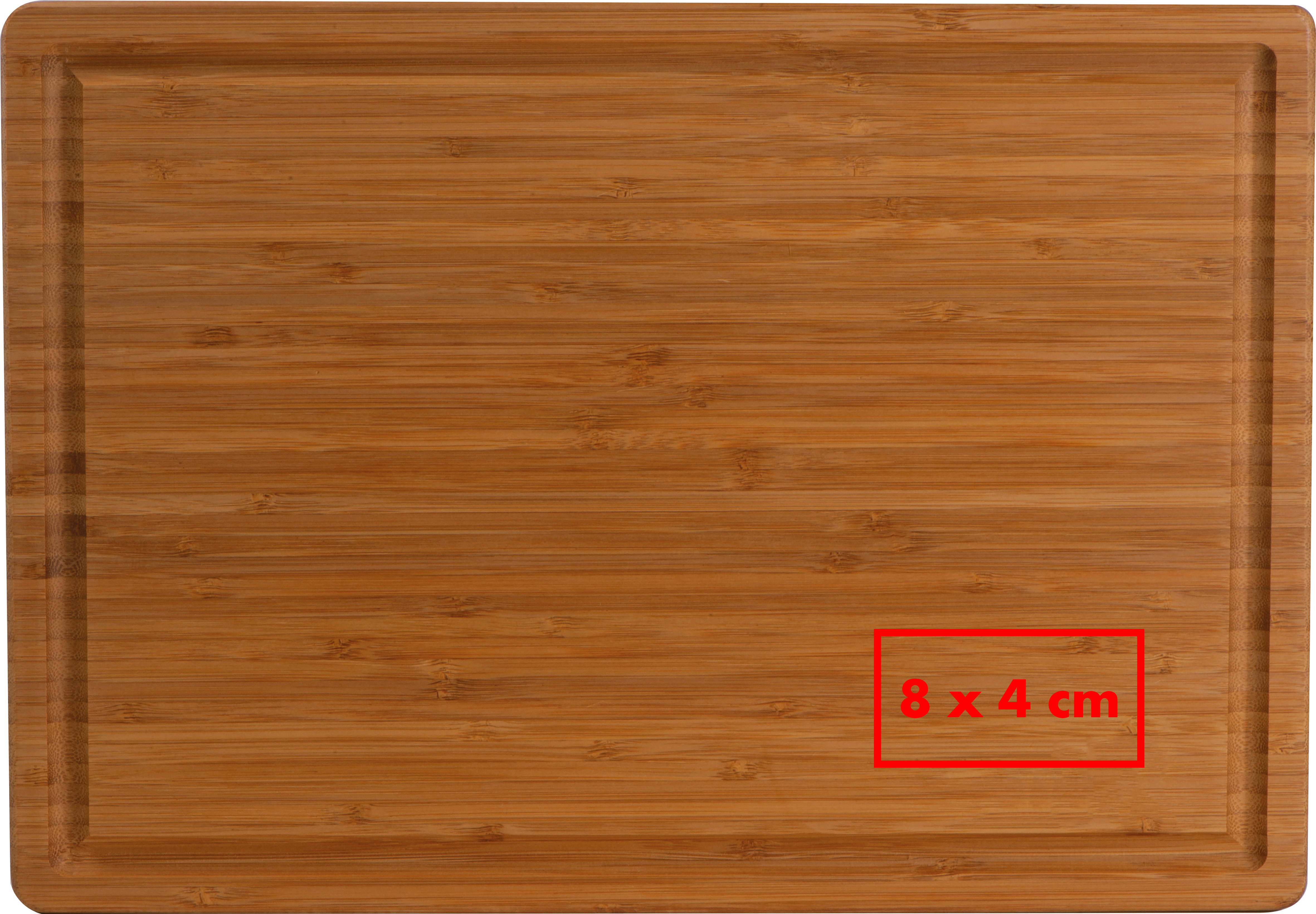 Massives Schneidebrett aus Bambus mit Abtropfrinne und eingearbeiteten Tragegriffen.Herzlich willkommen zu unserem massiven Schneidebrett aus hochwertigem Bambus – ein zuverlässiger Begleiter in der Küche mit praktischen Details! Dieses Schneidebrett ist nicht nur robust und langlebig, sondern verfügt auch über eine Abtropfrinne und eingearbeitete Tragegriffe für eine komfortable Handhabung. Produkthighlights: Hochwertiger Bambus: Das Schneidebrett besteht aus massivem und hochwertigem Bambus, was nicht nur eine natürliche Optik gewährleistet, sondern auch für eine lange Lebensdauer sorgt. Abtropfrinne: Die eingebaute Abtropfrinne fängt Flüssigkeiten auf und sorgt dafür, dass der Arbeitsbereich sauber bleibt – ideal beim Schneiden von Obst, Gemüse oder Fleisch. Eingearbeitete Tragegriffe: Die Tragegriffe sind nahtlos ins Design integriert und ermöglichen ein einfaches Anheben und Transportieren des Schneidebretts. Praktische Größe: Mit einer großzügigen Größe bietet das Schneidebrett ausreichend Platz für verschiedene Schneidearbeiten. Werbeanbringung: Ihr Logo wird dezent in eine Ecke des Schneidebretts graviert, um eine elegante und persönliche Note zu verleihen.
