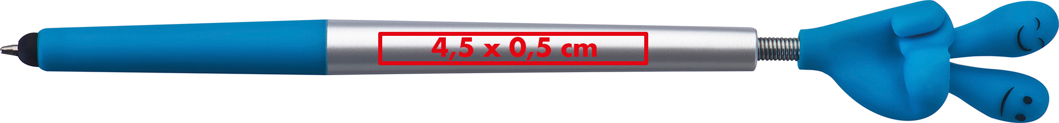 Flexy Smile Hand Kugelschreiber aus Kunststoff mit blau schreibender Mine und Touchfunktion.