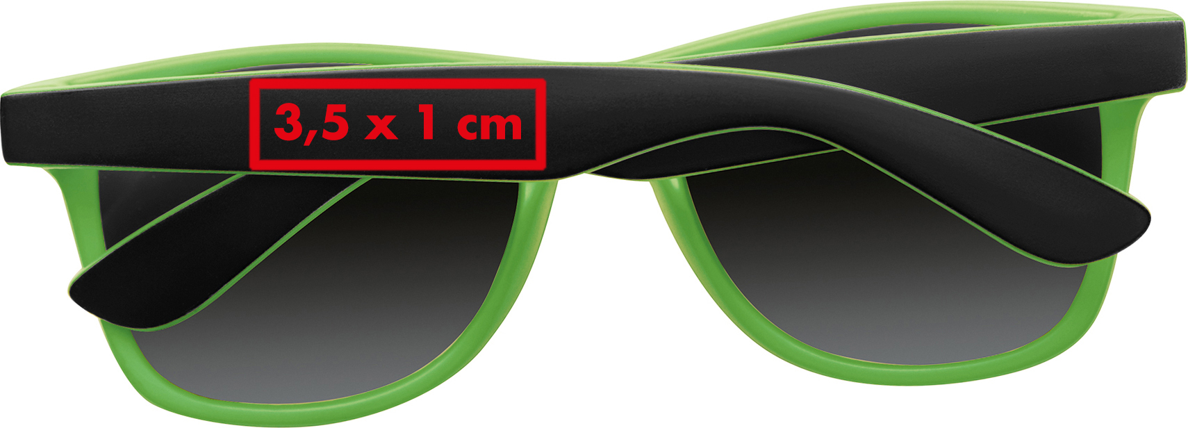 Stylische Sonnenbrille aus Kunststoff, zweifarbig mit verspiegelten Gläsern, die natürlich UV 400 Schutz der Filterkategorie 3 haben.Sonnenbrille mit Stil: Unsere stylische, zweifarbige Sonnenbrille mit verspiegelten Gläsern und individueller Werbung auf dem Bügel! Sie ist nicht nur ein modisches Accessoire, sondern auch ein effektiver Schutz für die Augen. Produkthighlights: Stilvolles Design: Die Sonnenbrille besticht durch ihr zweifarbiges, modernes Design, das für einen trendigen Look sorgt. Verspiegelte Gläser: Die verspiegelten Gläser sind nicht nur stylisch, sondern bieten auch ausgezeichneten Schutz vor schädlichen UV-Strahlen. Die Gläser entsprechen UV 400 Schutz und Filterkategorie 3. Hochwertiger Kunststoff: Die Sonnenbrille ist aus hochwertigem Kunststoff gefertigt, was für Langlebigkeit und Tragekomfort sorgt. Werbeanbringung: Ihre Werbung wird außen auf den schwarzen Bügel gedruckt, um sicherzustellen, dass Ihre Marke in der Öffentlichkeit präsent ist.
