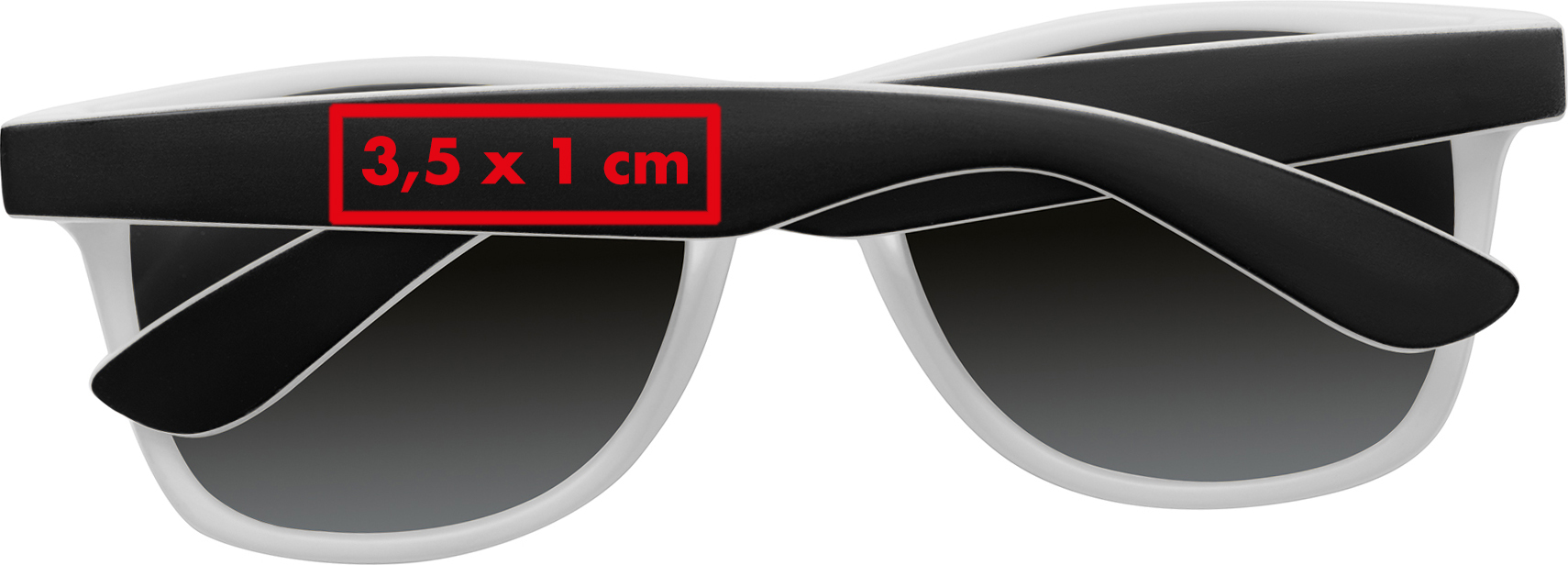 Stylische Sonnenbrille aus Kunststoff, zweifarbig mit verspiegelten Gläsern, die natürlich UV 400 Schutz der Filterkategorie 3 haben.Sonnenbrille mit Stil: Unsere stylische, zweifarbige Sonnenbrille mit verspiegelten Gläsern und individueller Werbung auf dem Bügel! Sie ist nicht nur ein modisches Accessoire, sondern auch ein effektiver Schutz für die Augen. Produkthighlights: Stilvolles Design: Die Sonnenbrille besticht durch ihr zweifarbiges, modernes Design, das für einen trendigen Look sorgt. Verspiegelte Gläser: Die verspiegelten Gläser sind nicht nur stylisch, sondern bieten auch ausgezeichneten Schutz vor schädlichen UV-Strahlen. Die Gläser entsprechen UV 400 Schutz und Filterkategorie 3. Hochwertiger Kunststoff: Die Sonnenbrille ist aus hochwertigem Kunststoff gefertigt, was für Langlebigkeit und Tragekomfort sorgt. Werbeanbringung: Ihre Werbung wird außen auf den schwarzen Bügel gedruckt, um sicherzustellen, dass Ihre Marke in der Öffentlichkeit präsent ist.