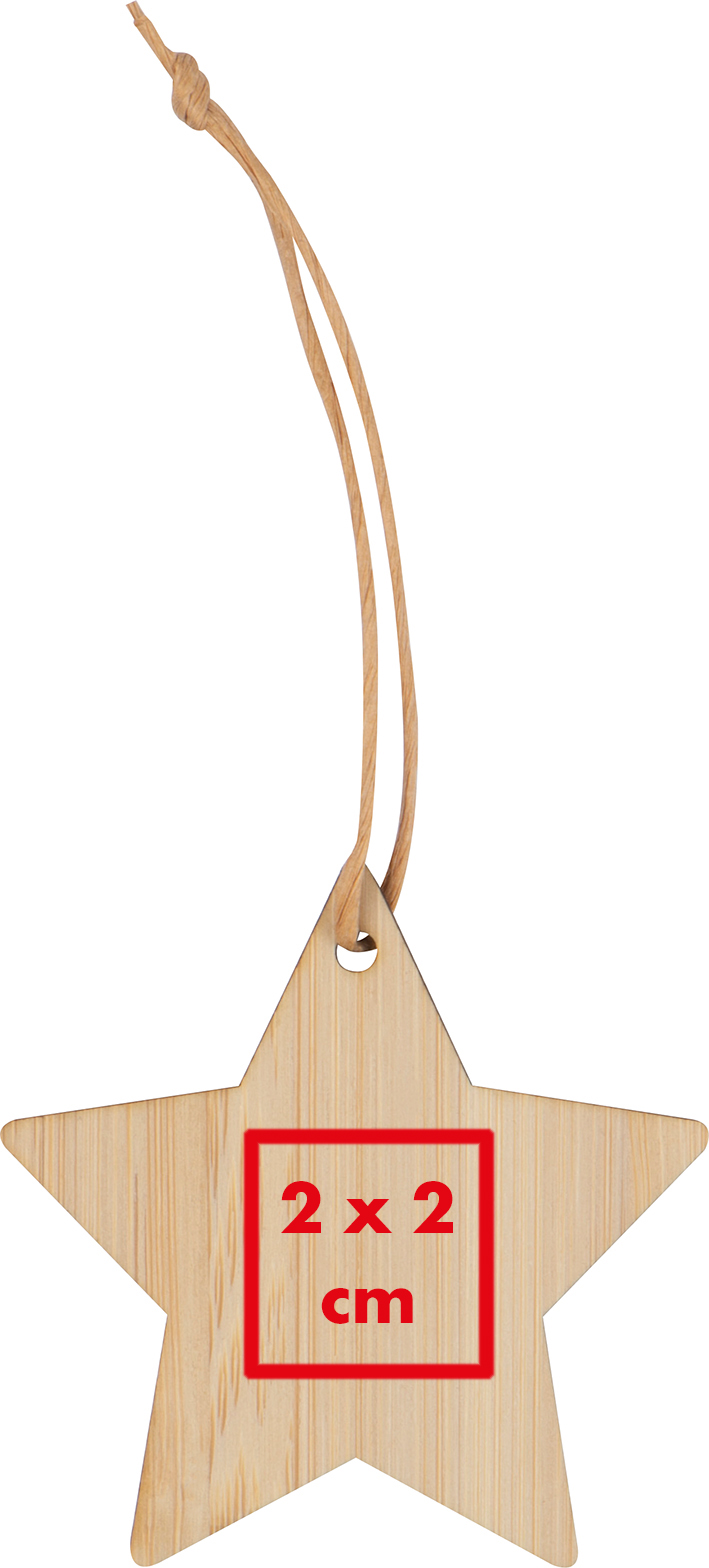 Christbaum- oder Dekoanhänger aus Bambus in der Form eines Sterns.Unsere Christbaum- und Dekoanhänger aus hochwertigem Bambus sind die perfekte Ergänzung für Ihren Weihnachtsbaum oder Ihre Dekoration. Diese Bambussterne verleihen Ihrer Festtagsdekoration einen natürlichen und stilvollen Touch. Produkthighlights: Natürliches Design: Die Anhänger sind in Form eines stilvollen Sterns gestaltet und bestehen aus Bambus, was für eine warme und elegante Optik sorgt. Hochwertiges Material: Die Bambusanhänger werden aus qualitativ hochwertigem Bambus gefertigt und präzise verarbeitet, um eine lange Lebensdauer sicherzustellen. Vielseitige Nutzung: Diese Sterne eignen sich nicht nur als Christbaumanhänger, sondern auch als Dekoration für Geschenke, Tischarrangements und vieles mehr. Werbeanbringung: Wir bieten die Möglichkeit, Ihr Logo auf den Bambusstern zu gravieren, um diese Anhänger zu einem einzigartigen Werbemittel oder Geschenk zu machen.