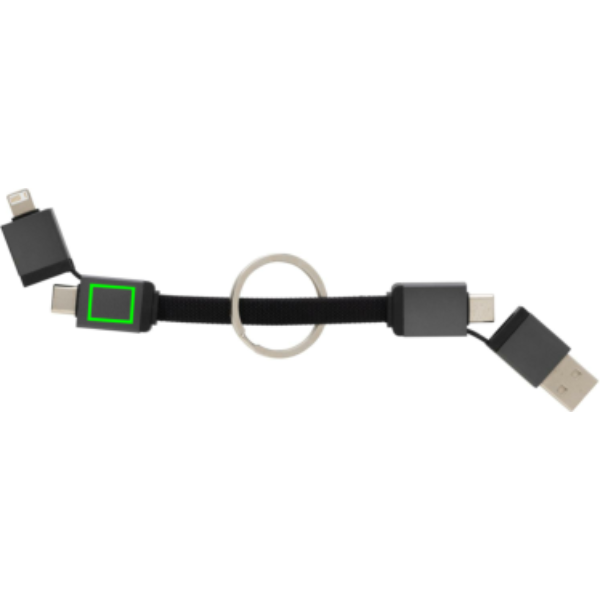 Terra 4-in-1 Schnellladekabel für den Schlüsselbund aus rAlu als Werbeartikel oder Werbemittel