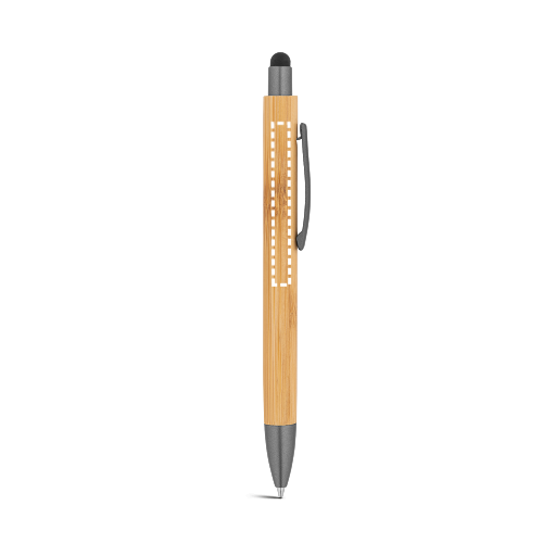 Kugelschreiber aus Bambus mit Clip aus Metall, PP Elemente und matter Oberfläche. Mit einer Schwarz Touchpenfunktion. Schwarzschreibende Mine. Da das Produkt aus natürlichen Materialien hergestellt wird, können Farbe des Produkts sowie das Druckergebnis von Produkt zu Produkt unterschiedlich seinIhr Promoidee-Kundenbetreuer ist Ihnen gerne behilflich den Artikel ZOLA Kugelschreiber, durch Anbringung Ihres Firmenlogos, zu Ihrem ganz persönlichen Werbeartikel zu machen.